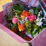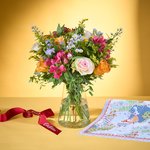 Bursts of orange and pink roses, cerise alstroemeria and lilac statice make this bunch a real birthday showstopper. With playful pops of solidago and soft pink asters in the mix, it’s bold, beautiful and ready to celebrate.