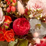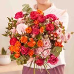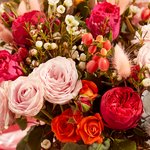 The ultimate dose of happiness, this luxurious bouquet was specially created for our exclusive collection. It's filled with premium quality red roses, peachy hypericum, white waxflower and dressed with cinerea, meaning it brightens any home it sits in! Plus, it's lovingly hand-arranged by our expert florists and presented in vibrant red tissue for the perfect gift.