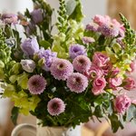 The Sweet Alyss bouquet is a celebration of colour and charm. Sunshine-yellow antirrhinums and soft pink roses meet dreamy lilac lisianthus and blue oxypetalum, all lifted with playful santini doria and silvery eucalyptus. A graceful arrangement that’s as romantic as it is uplifting.