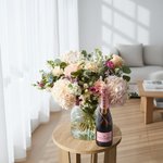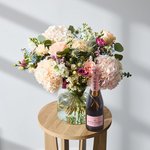Soft Pink Hydrangea & Peach Rose Hand‑Tied Flower Moet Rosé Imperial Champagne 75cl Gift Set