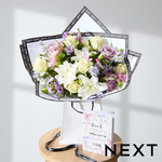 Soft lilacs and pinks meet elegant white roses and lilies in this dreamy bouquet. Bursting with delicate blooms and finished in a chic gift bag, it’s a beautiful way to make someone’s day extra special.
