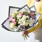 Soft lilacs and pinks meet elegant white roses and lilies in this dreamy bouquet. Bursting with delicate blooms and finished in a chic gift bag, it’s a beautiful way to make someone’s day extra special.