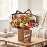 Warm Orange Rose, Yellow Santini & Antirrhinum Bouquet with Lindt Assorted Truffles Gift Set