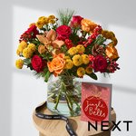Inspired by cosy winter nights, this stunning NEXT bouquet is all about warmth and festive charm. With rich red roses, burnt orange orchids, berries and pinecones, it’s the perfect mix of colour and comfort. A gorgeous gift that’s made to shine beside the fireside.