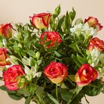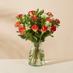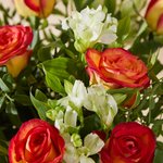 10 Roses 50cm - Orange magma 5 Alstroemeria white 1 Pistche