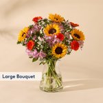How do you make someone’s day? With this vibrant collection of budding blooms! Orange and yellow come together in this full-bodied arrangement, which is hand-tied and wrapped in cellophane by our expert florists.