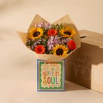How do you make someone’s day? With this vibrant collection of budding blooms! Orange and yellow come together in this full-bodied arrangement, which is hand-tied and wrapped in cellophane by our expert florists.