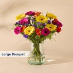 With sunflowers, roses and sea lavenders, this bouquet is the perfect way to make someone's day.