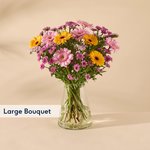 What’s in the Box? 3 germ pink Large - 5 germ pink Total bouquet length: 50cm The Important Part: Please Note: