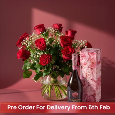 24 Premium Red Roses & Moet Rose Gift Set