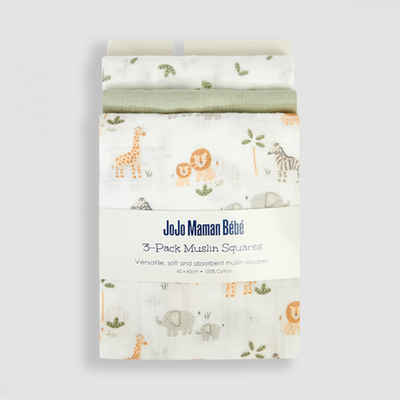 JoJo Maman Bébé 3-Pack Safari Muslin
