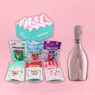 Candy Kittens Happy Birthday Sweets & Bottega Pink Prosecco 75cl