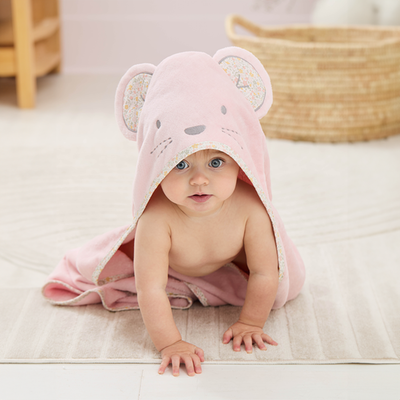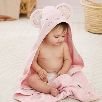 JoJo Maman Bébé Pink Floral Mouse Hooded Towel