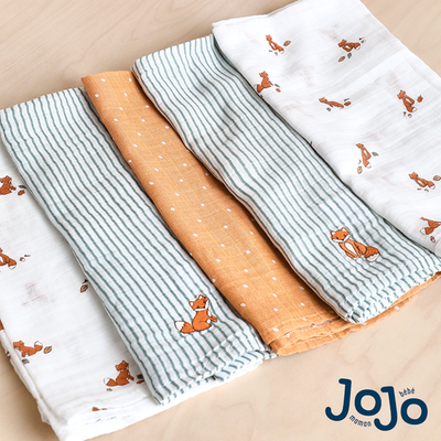 JoJo Maman Bébé Fox Embroidered Muslins 5-Pack