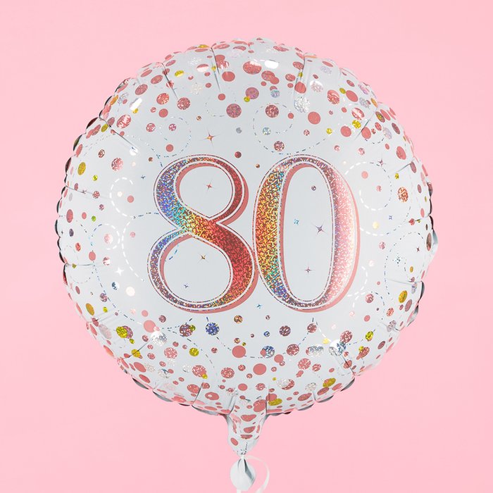 80th White & Rose Gold Holographic Balloon