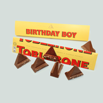 Presenting our 340g milk chocolate Toblerone, wrapped in a vibrant "Birthday Boy" sleeve. This isn't just a chocolate bar; it's a celebration in every bite. Make his special day unforgettable with the iconic creamy Swiss milk chocolate studded with honey and almond nougat, thoughtfully encased in a custom sleeve designed to bring joy and sweetness to his birthday. The perfect gift for the ultimate chocolate lover!