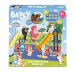 Let’s enjoy a fun-filled day out with Bluey and her friends while playing with the Bluey and Friends Dough Set. This bright, vibrant set has everything Bluey fans need to mould and shape all their favourite Bluey characters. With included dough, moulds and a double-sided playmat to inspire stories and adventures for your dough characters, inspire creativity and mess-free fun with this playset.