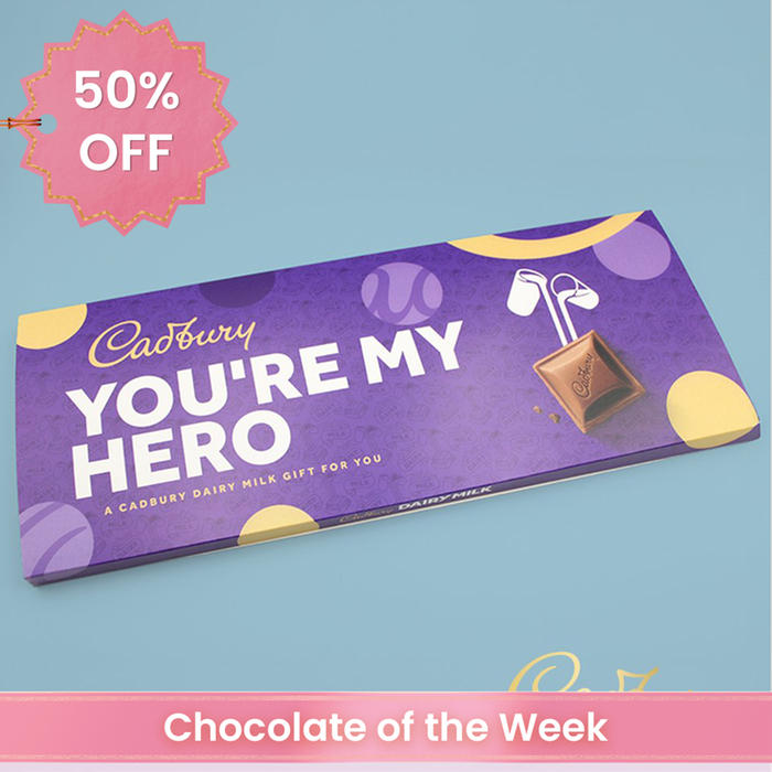 Say a heartfelt thanks with a true British classic. This mighty 850g bar of smooth, creamy Cadbury Dairy Milk comes wrapped in a bold “You’re My Hero” sleeve – perfect for the everyday legends in your life. Whether it’s a big gesture or a little moment of gratitude, this chocolatey gift delivers with every bite.