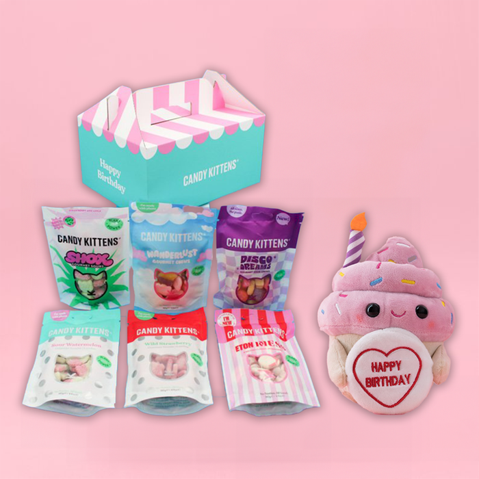 Make birthdays extra sweet with the Candy Kittens Happy Birthday Hamper, beautifully customised with Candy Kittens’ unique birthday design. Perfect for gifting, this hamper is packed with irresistible flavours to delight any Candy Kittens fan. Paired with Swizzels Love Hearts 15cm Happy Birthday Cupcake.