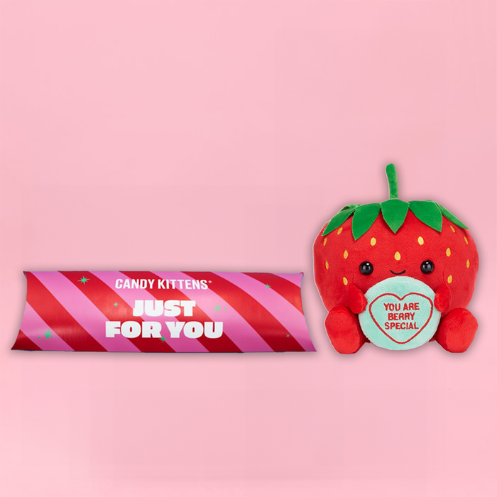 Make their birthday extra sweet with this playful pillow-shaped gift box, filled with three 140g pouches of Candy Kittens’ gourmet vegan sweets. Featuring a mix of Wild Strawberry, Eton Mess and Sour Watermelon, it’s the perfect indulgent treat to brighten their big day. Paired with this super-cute Swizzels Love Hearts Strawberry soft plush toy with the message “You Are Berry Special” embroidered on it.