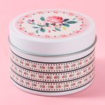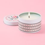 Lift the lid to find inside the candle is tinted palest pink to match the tin. Reuse the tin for jewellery or small trinkets once finished. Cruelty free and vegan friendly.