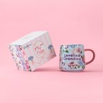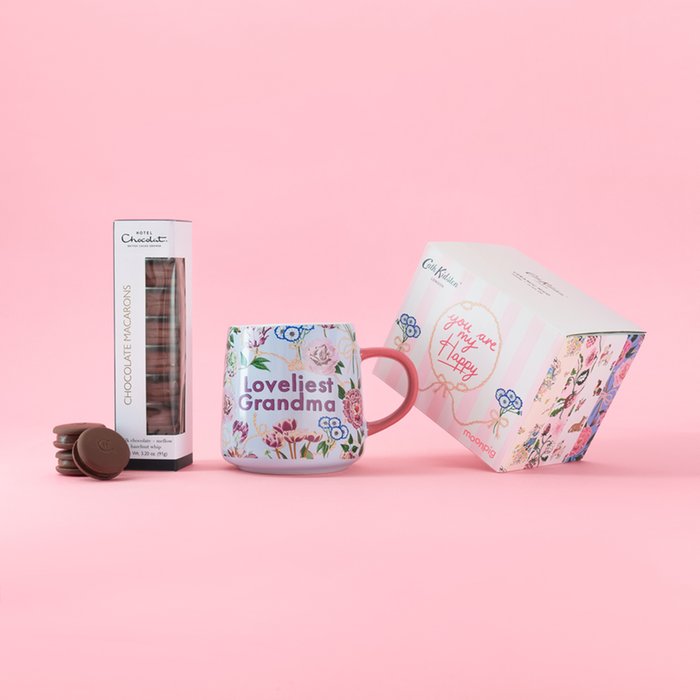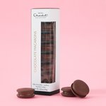 Our take on the French patisserie: light praline whip between mellow 40% milk chocolate discs. Chocolate Macarons with a twist! Paired with a Cath Kidston Mug