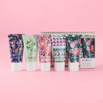 A giftable set of five pocket hand creams in assorted Cath Kidston designs and three uplifting fresh fragrances. Packed with emollient shea butter, cocoa seed butter, glycerin and vitamin E, blended to leave skin feeling soft.