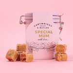 Strawberries and lashings of clotted cream, to produce mouth watering Strawberry & Clotted Cream Fudge. Presented in our classic clip lid tin format, with a specific message for mum, this fudge is not to be missed out on.