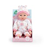 Soft bodied baby doll in adorable pink outfit