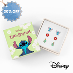 This Official Disney Lilo and Stitch pack of 3 earrings is the perfect gift for any Disney fan! Featuring a pair of red flower studs, Stitch himself and Stitch's bear Scrump. Packaged in official Disney packaging.