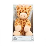 Super soft and gorgeously comforting, the Early Learning Centre Giraffe is a perfect first toy for any newborn. This fluffy giraffe has soft, velvety ears and horns for baby to feel and squeeze as they snuggle up. Will you take Giraffe on an adventure or cuddle up for a dreamy sleep? With embroidered eyes and cuddly features, this Giraffe is sure to become baby’s favourite. This soft toy will stimulate baby’s senses and be a comforting addition to their early childhood. For gift-givers, this leopard arrives in a shimmering box with a ‘to and from' gift label attached. Super soft plush Giraffe toy. Made in a responsible and thoughtful way with stuffing made from recycled bottles. Super soft first toys for baby to snuggle, squeak and play.