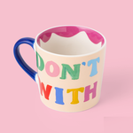 Our "Don't Mess with Mama Mug" features hand-painted letters that dance around the mug, wrapping it in a burst of colours over a creamy canvas, complete with a cool blue handle for that extra pop.