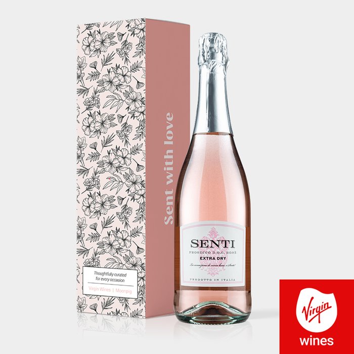A beautiful floral box with Senti Prosecco Rose Extra Dry.
