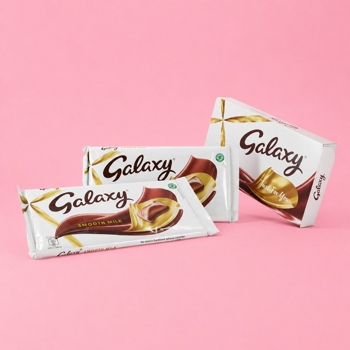Indulge in the bliss of our exquisitely crafted Galaxy Smooth Milk chocolate bar. With its velvety smoothness and irresistible melt-in-the-mouth sensation, it's a treat that will leave your taste buds dancing. Its a perfect sharing snack bar created for special moments. This Galaxy Smooth Milk chocolate bar makes a gorgeous chocolate gift, a superb stocking filler, and a classic component for a deluxe chocolate hamper. Take time to settle on the sofa, flick on your comfort film for movie night, and enjoy an evening to yourself with irresistibly luscious chocolate.