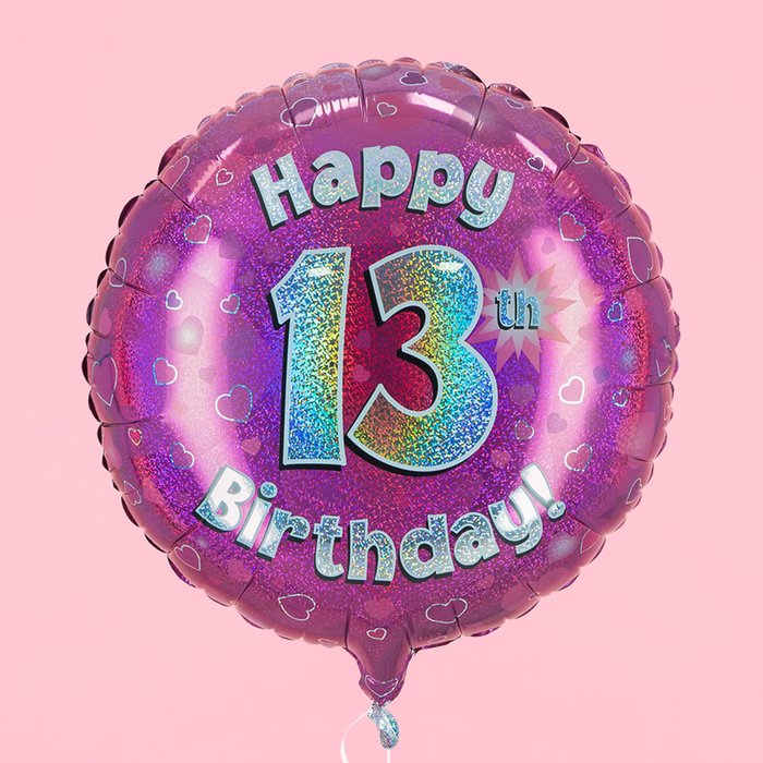 Happy 13th Birthday Pink Holographic Balloon