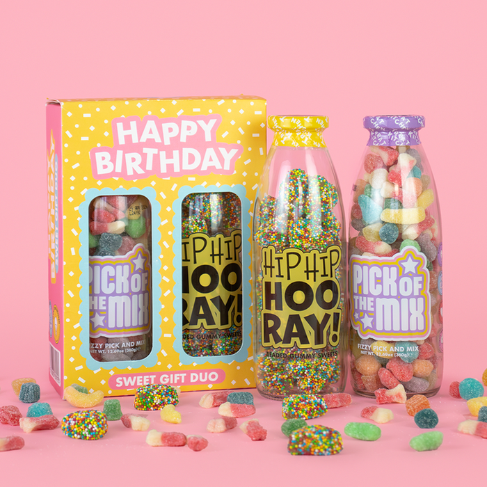 Hip Hip Hooray (420g) – A vibrant bottle of tasty beaded gummies bursting with flavour and satisfying crunch. These delicious bites are the perfect way to say “Hooray!” on their special day.