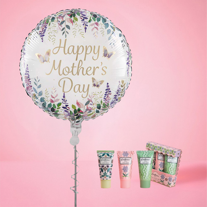 Show your love with the Happy Mother's Day Floral foil balloon. Perfect for Mother's Day, this cute design will bring a smile to her face. Making their day even more special paired with 3 Cath Kidston Hand Creams