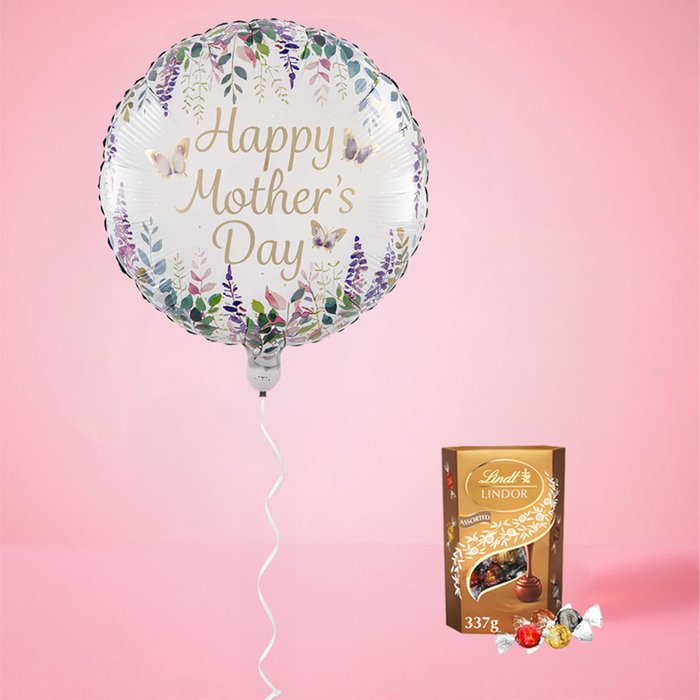 Show your love with the Happy Mother's Day Floral foil balloon. Perfect for Mother's Day, this cute design will bring a smile to her face. Making their day even more special paired with Lindt Assorted Truffles.