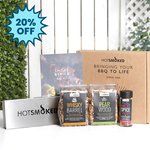 This Hot smoking Gift Set is perfect for the barbeque beginner who is keen to start learning how to smoke meats. 2 different flavoured wood chips accompany a jar of spicy BBQ rub, all enclosed in a robust Hot Smoked stainless steel smoker box to create a fabulous starting point for hot smoking success.