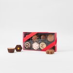 For allergens, including cereals containing gluten, see ingredients in BOLD. All chocolates in this box may contain tree nuts, peanuts, milk, soya, gluten, wheat, egg, sesame. Ribbons are for decoration. Supervision of an adult is recommended.