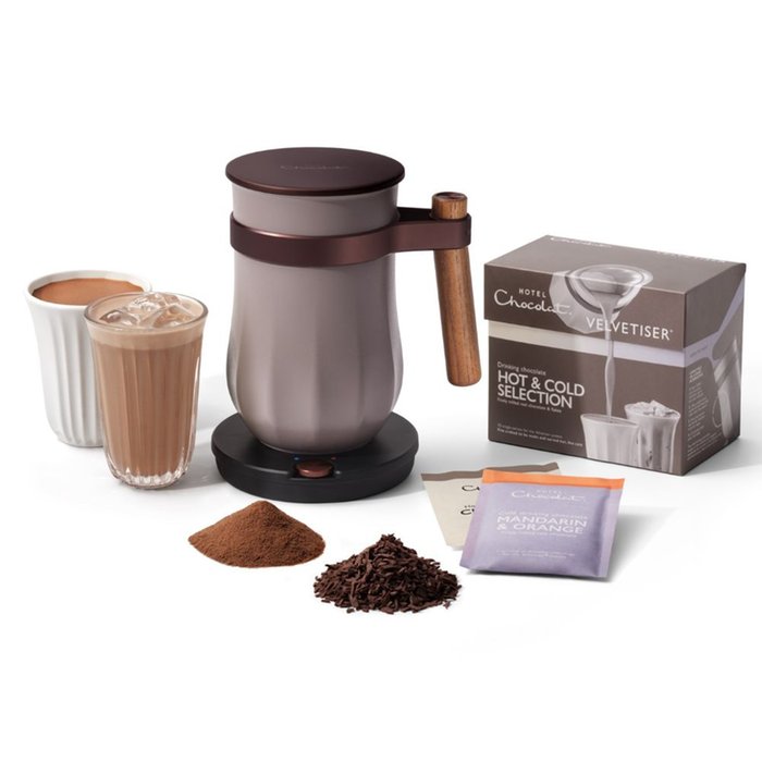 Introducing the complete system for hot and cold barista-grade drinking chocolate: the ALL-NEW Velvetiser® in Pebble from Hotel Chocolat.