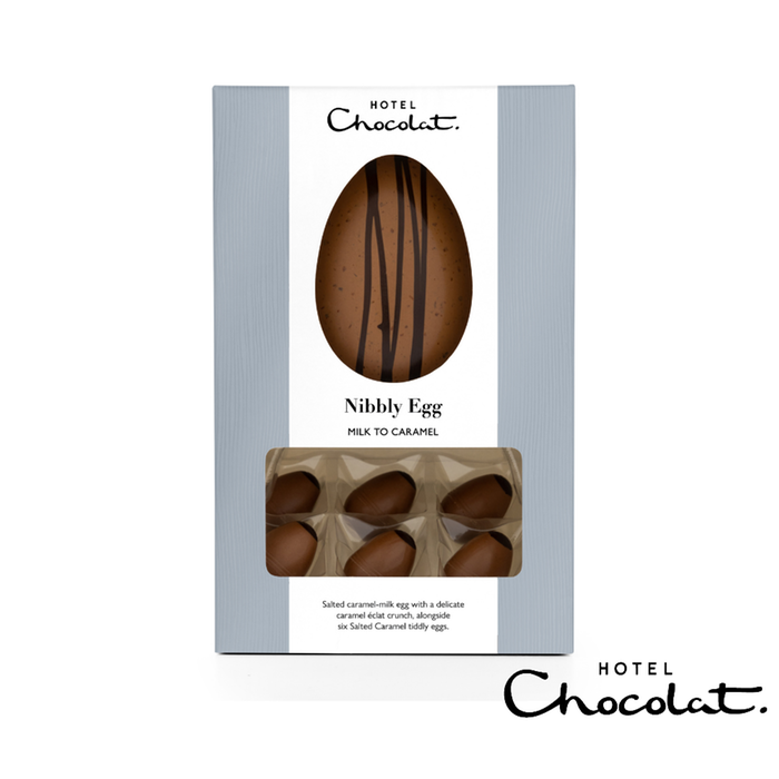 And as if that's not enough, our Milk to Caramel Nibbly Egg comes complete with six tiddly Salted Caramel chocolate eggs - each brimming with elegant caramel cream, lifted with a sprinkling of sea salt and encased in even more caramel-milk chocolate.