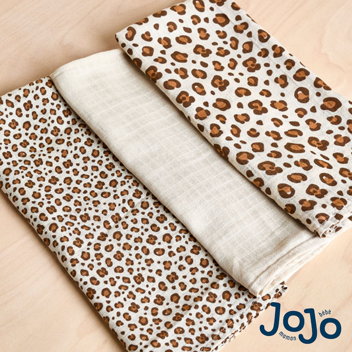 1 x JoJo Maman Bébé 3-pack Leopard Print Muslins
