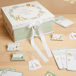 Treasure every milestone with our Welcome Little One Memory Keepsake Box. Featuring 13 milestone cards, inkless handprint kits, and boxes for first curls, teeth, and treasures, this cherished keepsake is designed to capture every special memory of your baby’s first year.