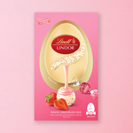 Melt into a moment of bliss with this Lindt White Chocolate egg and 8 LINDOR Strawberries & Cream truffles. Unwrap bliss this Easter