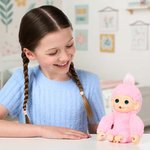 Luna Lemon is an adorable, interactive baby monkey designed to bring nurturing play to life. With her soft pink fur and sweet personality, she loves being pampered, cuddled, and adored. This tiny electronic pet reacts just like a real baby monkey, responding to touch and care with over 20 realistic sounds and reactions. She chatters, coos, and responds when you pet her or play with her. The perfect little furry companion for play time.