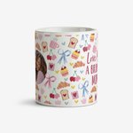 Featuring one circular photo frame alongside hand-drawn breakfast illustrations including croissants, toast, cherries, mugs, bows and hearts on a white background.