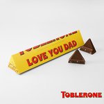 Introducing our 340g milk chocolate Toblerone, elegantly wrapped in a heartfelt "Love You Dad" sleeve. This isn’t just any chocolate bar; it’s a meaningful gesture of love and appreciation. Treat your dad to the iconic Swiss milk chocolate, infused with rich honey and crunchy almond nougat. The custom sleeve adds a personal and thoughtful touch, making this gift as special and unforgettable as the bond you share. Perfect for showing your dad just how much he means to you!