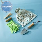 x1 Children's green Glovesx1 Children's hand trowelx10 Wooden Markersx1 Small roll of twinex1 Green Dotty bag