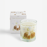 Perfect for gifting on their special day, this pure linen scented candle has a Hamish the Highland Cow graphic print, featuring a cute 'Happy Birthday to moo' slogan.